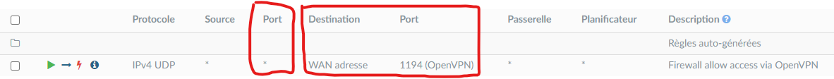 IPv4 UDP * * WAN adresse 1194 (OpenVPN) * *
